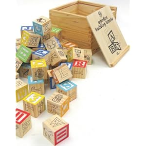 love these blocks-perfect size for a toddler to pick up and play with-the wooden box is great and we use it as a tool to fit all of the blocks back in it's place when it's time to... Read more