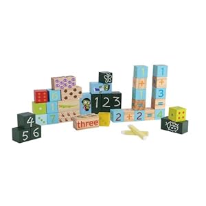 Kids can build with them, count with them, and eventually add and subtract with them! Oh, did we mention kids can write on them, too? These solid pine numbers blocks - some encased in chalkboard paint! - offer remarkable, educational play value. And as math skills grow, kids find new ways to use 'em! Includes 36 wood blocks and 2 pieces of chalks. By PBS Kids™. For ages 3 and up.This block set teaches kids about numbers in so many ways: It introduces numerical symbols and numbers in word form, and helps kids relate the two It teaches counting concepts through simple illustrations It helps kids understand basic math concepts such as addition, subtraction, and "equals" It lets kids create and solve their own math problems, by arranging the blocks and writing on the chalkboard blocks In addition, block play encourages creativity, spatial relationships, and collaborative and independent play. Great for coordination, too. Proceeds from PBS Kids toys help fund free, educational PBS Kids programming for all children. Parents consistently rank PBS Kids as the 1 trusted source of children's programming. PBS is also the 1 source of TV and online content used by pre-K teachers in the classroom. Includes 17 painted blocks, 8 chalkboard blocks, and 11 natural wood tone blocks Smallest block measures 1 1/2" cubed; largest block measures 3 1/4"W x 1 1/2"H x 1 1/2"D